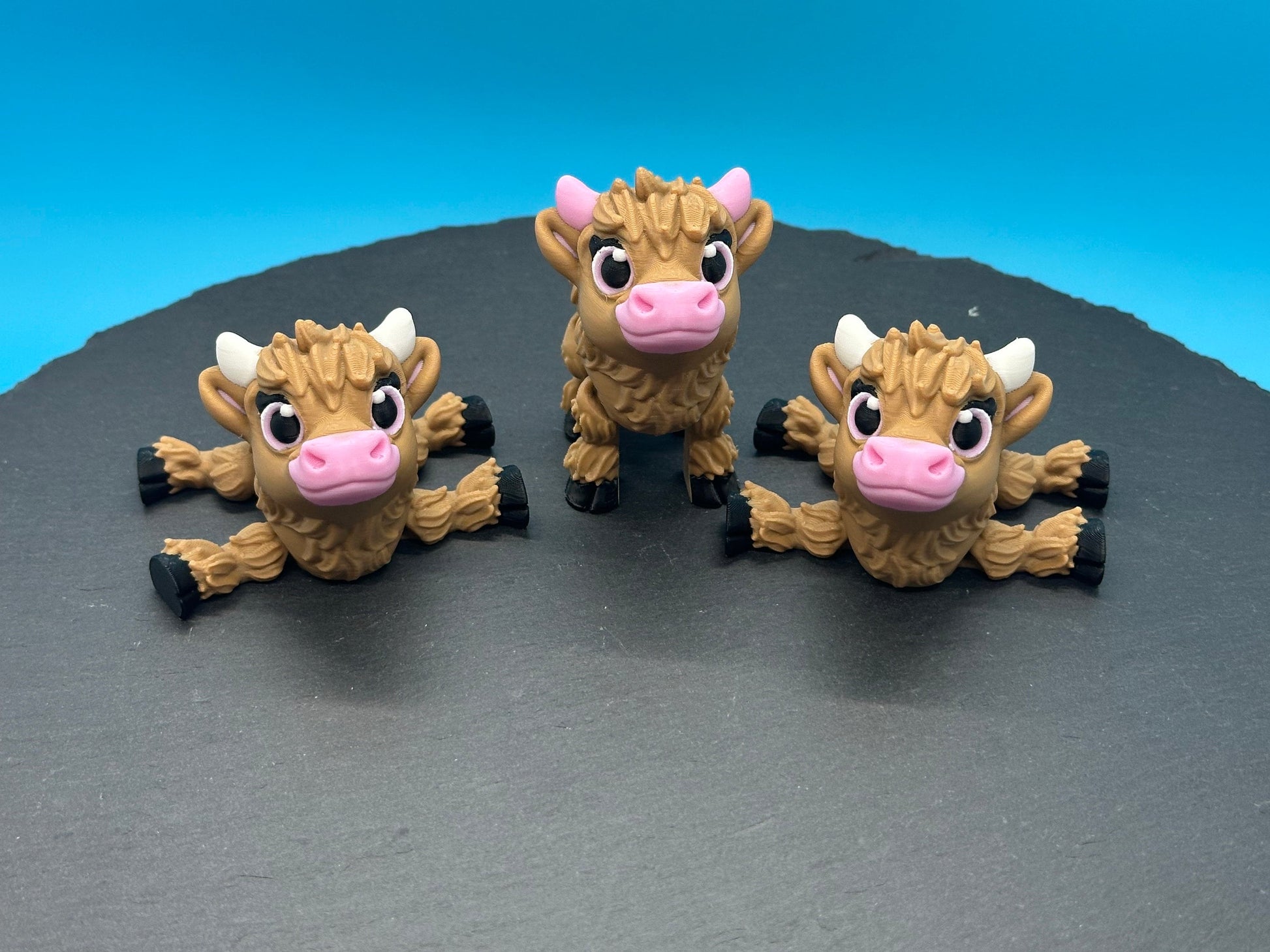 They are the cutest ever!! The Highland Cows can be posed to stand, lay down or sit. The shop owner is very supportive and keeps you updated along the way. I highly recommend his products!