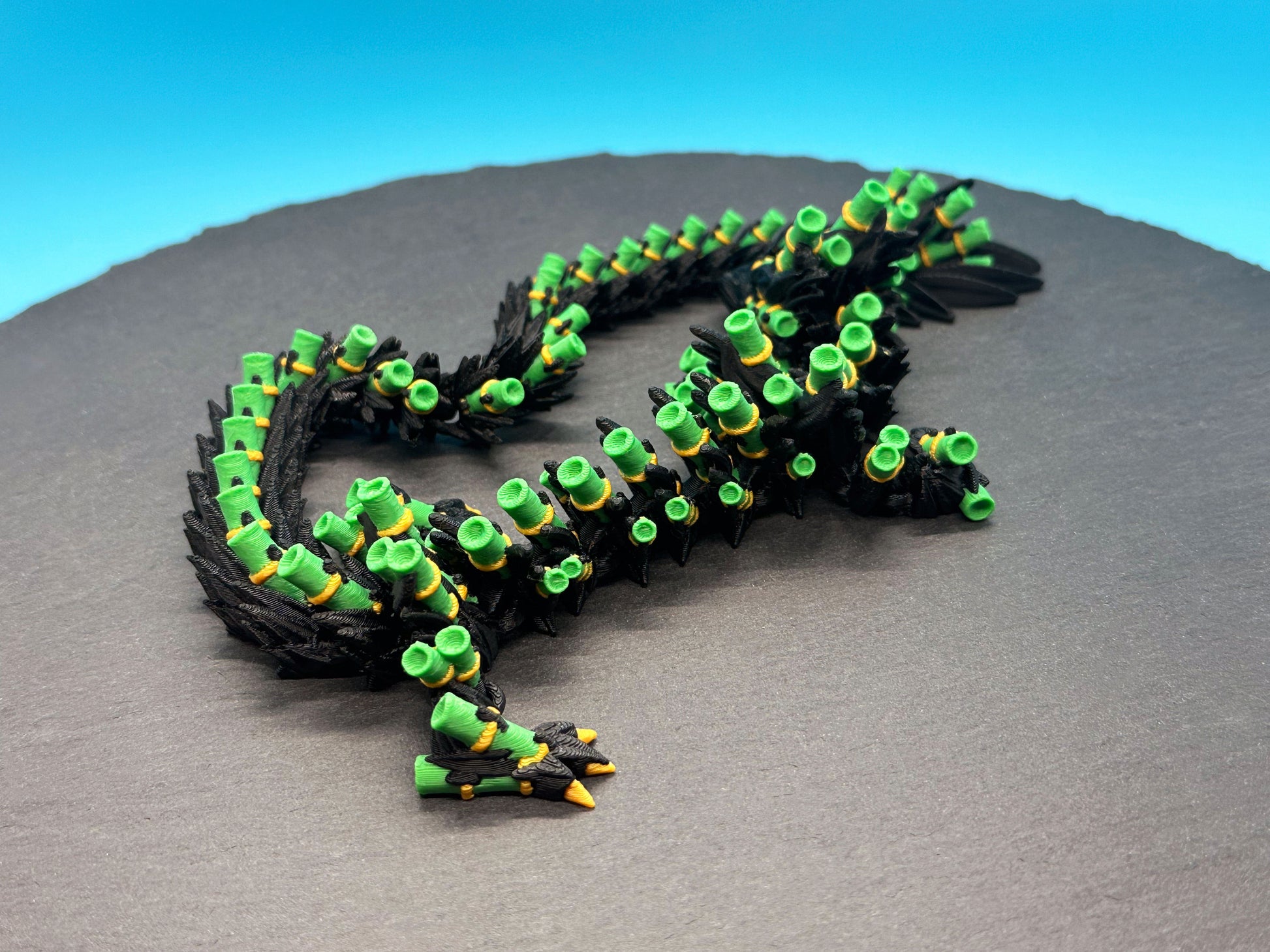 The Bamboo Dragon Multi-color Articulated Design is a truly unique piece of artwork that will captivate and amaze. With its stunning multi-color design, this dragon sculpture is sure to become the centerpiece of any room. But the beauty doesn't stop there - this art piece is also flexible and movable, allowing you to pose and display the dragon in different positions, bringing it to life. This fantastic gift is perfect for anyone who appreciates art and wants to add a touch of creativity to their space. Don't miss out on the opportunity to own this one-of-a-kind masterpiece. Order the Bamboo Dragon Multi-color Articulated Design today and elevate the aesthetic of your home or office.